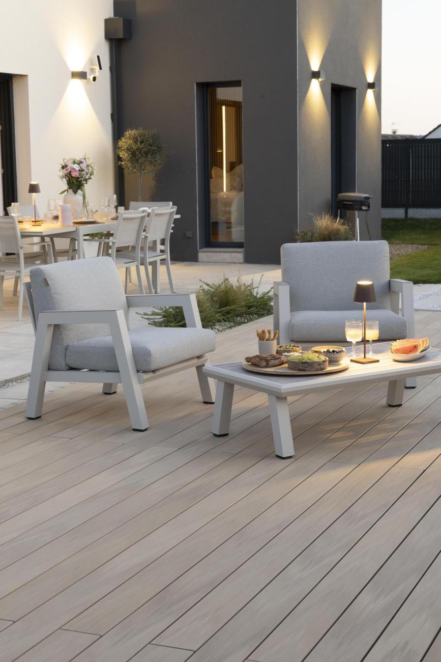 Ich kolory pozostają stabilne w czasie: nie jest konieczne stosowanie żadnej konserwacji ani impregnatu. Taras nie szarzeje.
