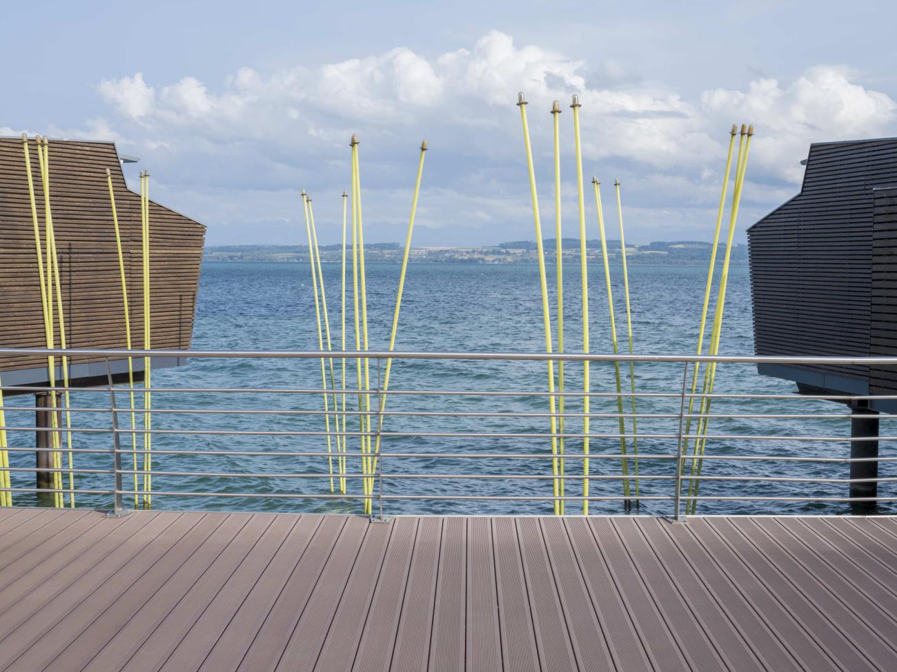 Nasze ryflowane deski tarasowe Elegance mają wszystkie zalety potrzebne w przypadku tradycyjnego tarasu z drewna kompozytowego: mają bardzo dobre właściwości antypoślizgowe, zarówno dla bosych stóp, jak i butów.